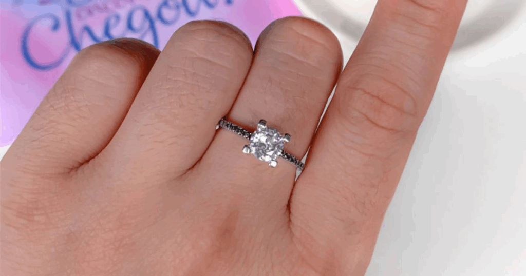 A modelo está usando o Anel Solitário de Prata Redondo Zircônia